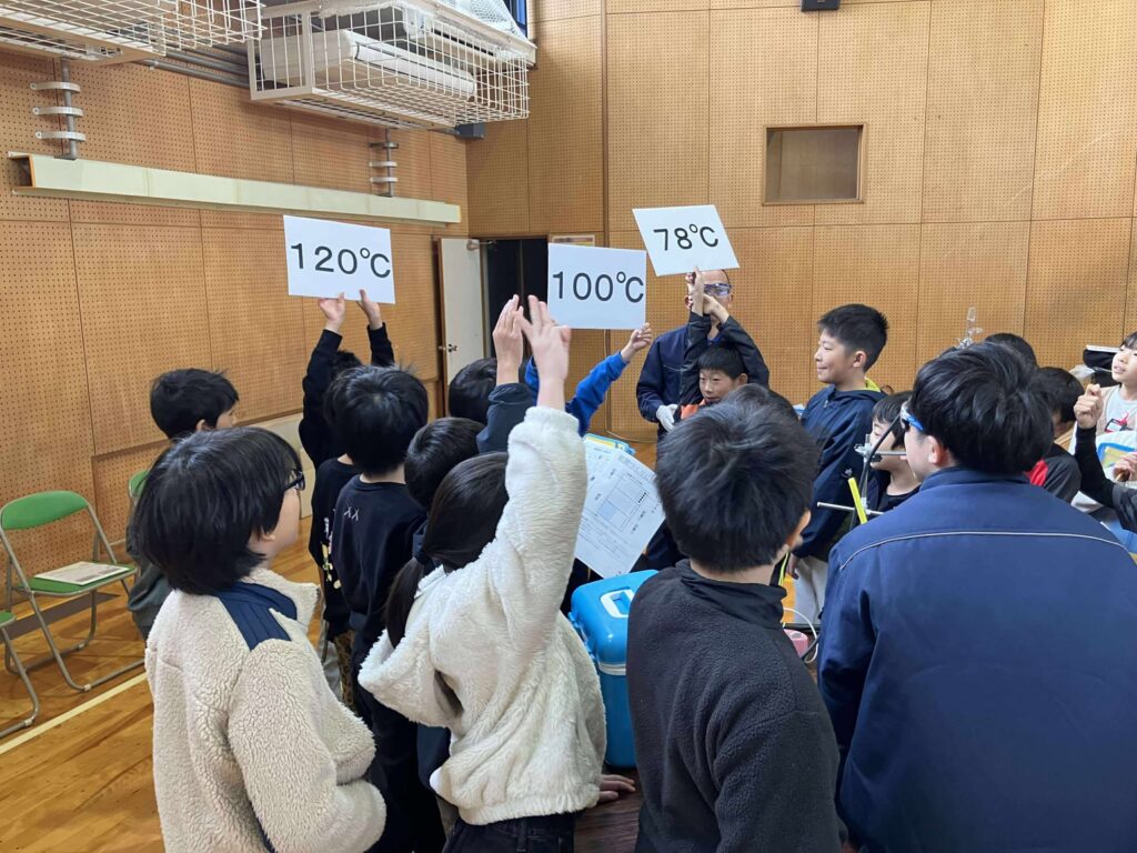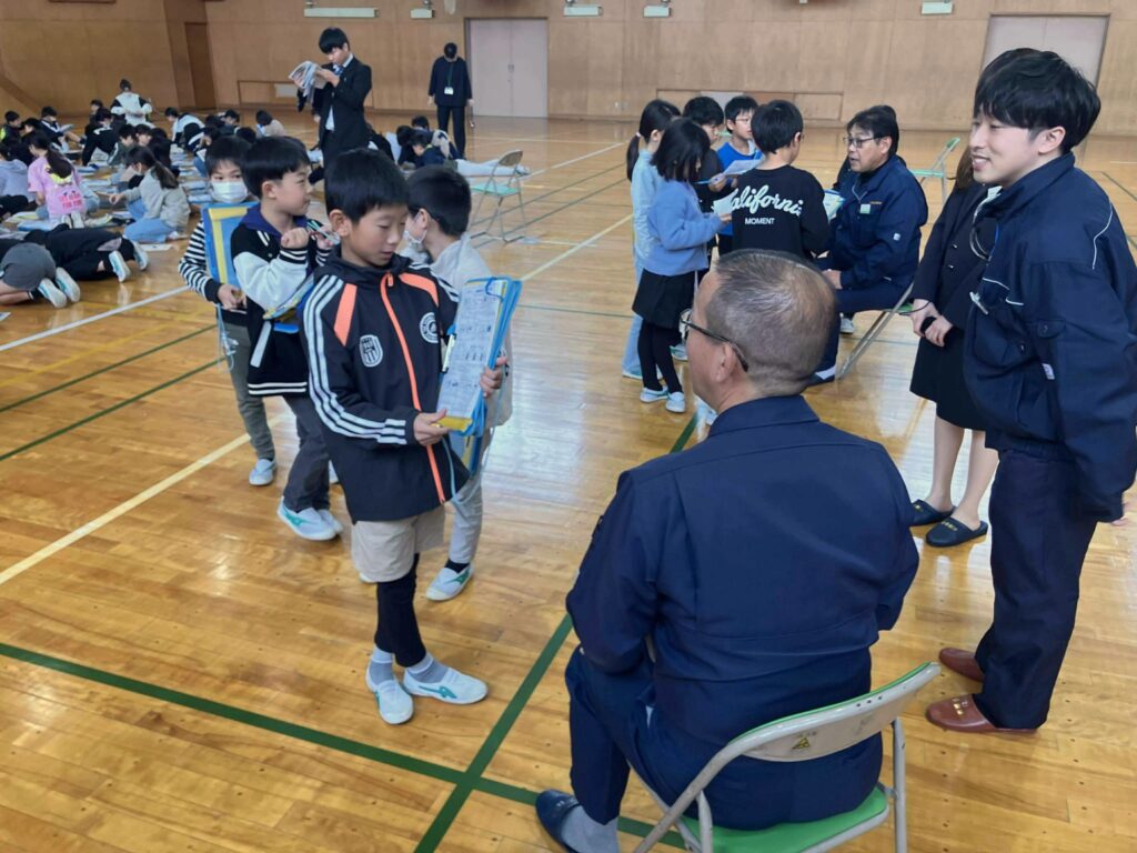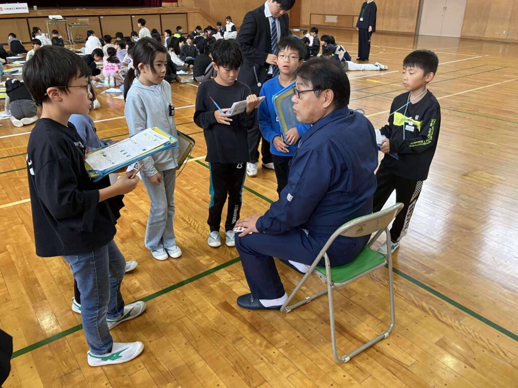 地元企業である三和油化工業株式会社様より、企業の取り組みや地域への貢献、SDGsの視点などについてお話しいただきました。子どもたちから社員の方へ積極的に質問をする場面もあり、一つひとつの問いに対して、わかりやすい言葉で丁寧に解説していただきました。さらに、クイズを交えたお話を通して、楽しみながら企業活動や社会とのつながりについて理解を深めることができました。