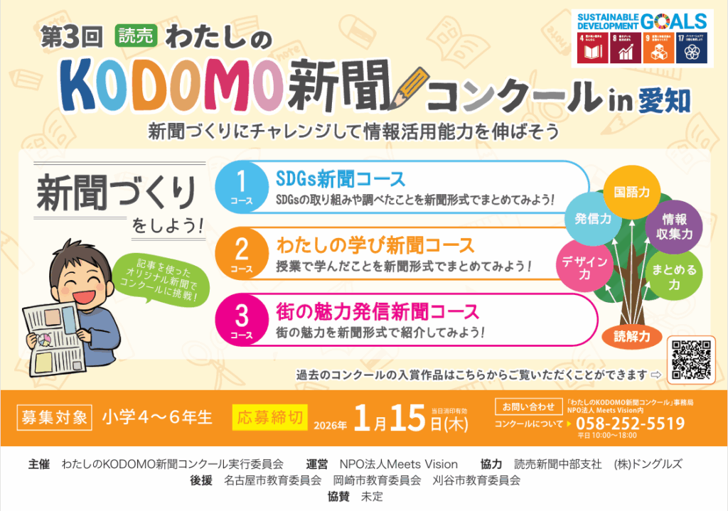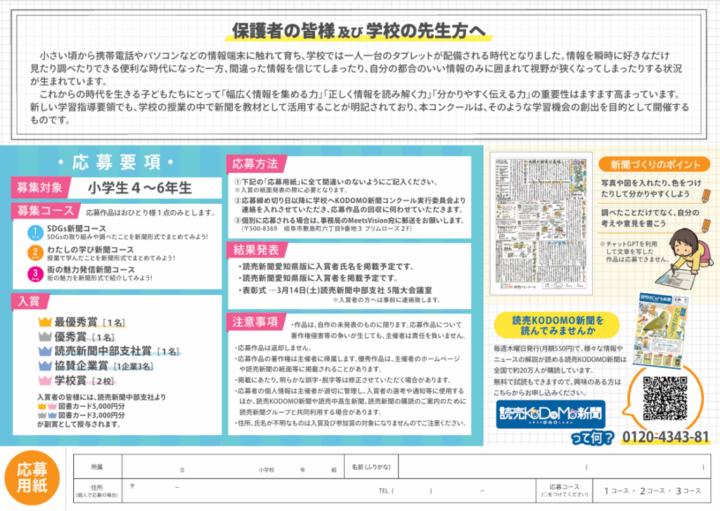 「読売わたしのKODOMO新聞コンクール」は、2025年に北海道・神奈川県・愛知県・岐阜県で開催されます。