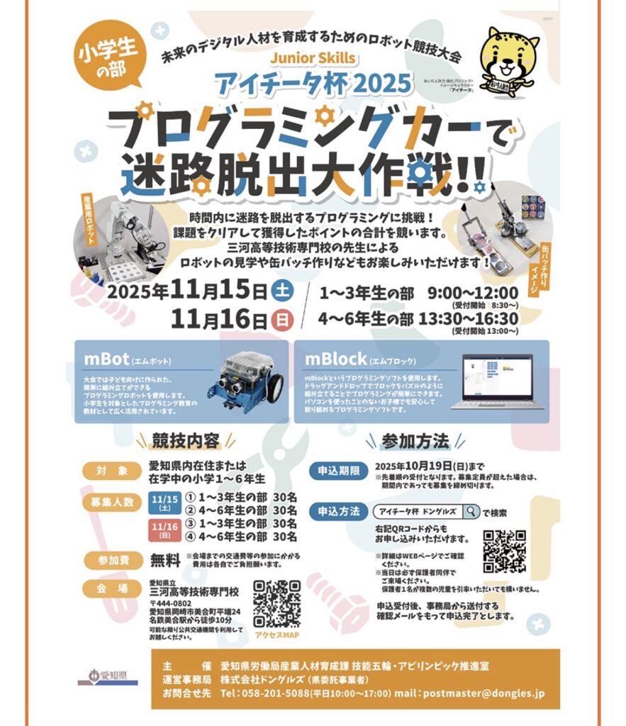 未来のデジタル人材育成を目的として、小・中学生を対象としたロボット競技大会 Junior Skills「アイチータ杯2025」(愛知県主催)を開催しました。