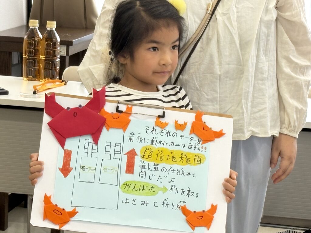 ロボットの動きや仕組みを紹介するだけでなく、作品に込めた工夫や想いについて、子どもたちが一生懸命プレゼンテーションをしてくれました。堂々とした発表の姿からは、ロボット製作に真剣に向き合ってきた子どもたちの努力や成長が感じられ、会場からは温かい拍手が送られました。