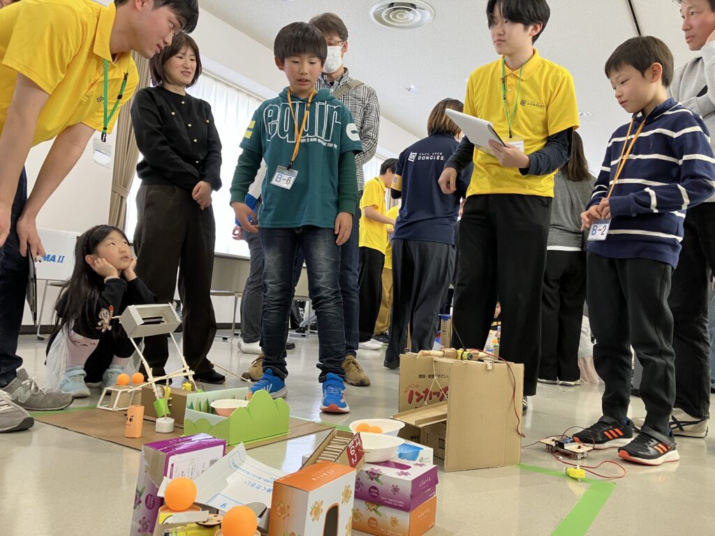 作品交流会では、子どもたちがロボットを操作して披露し、会場は大いに盛り上がりました。