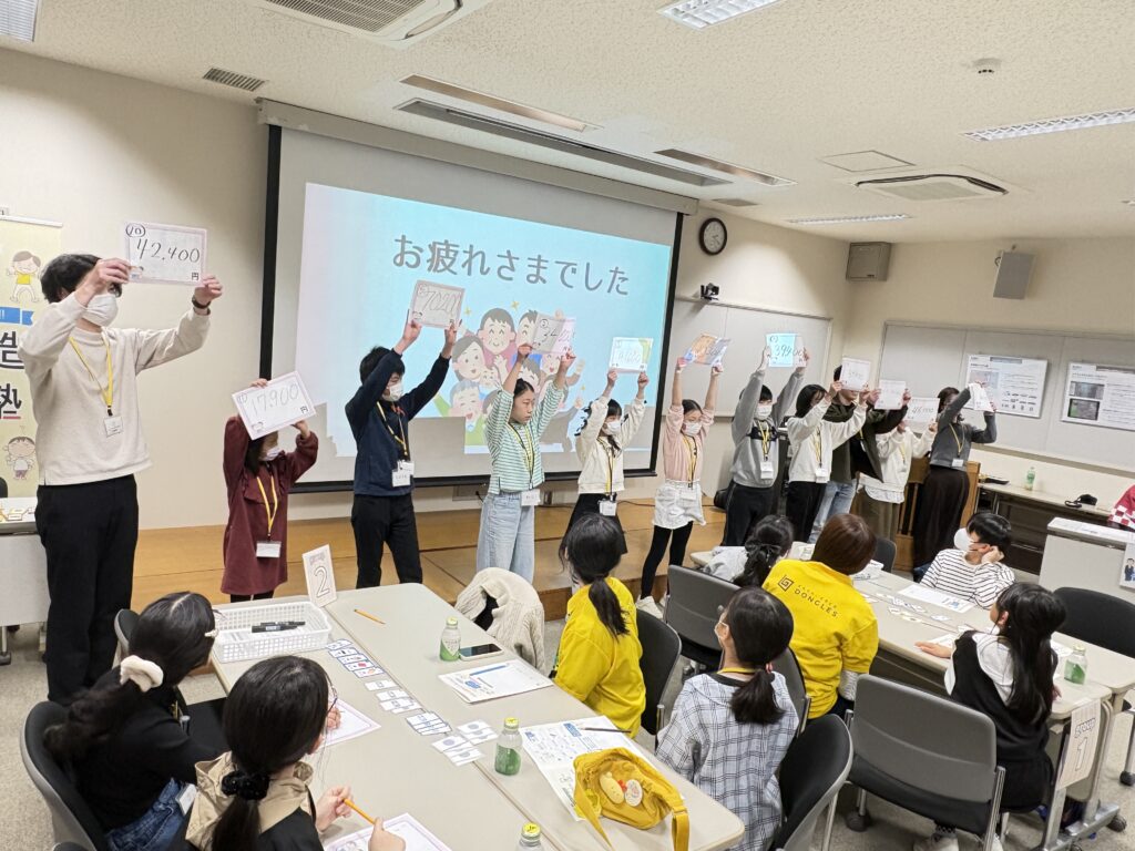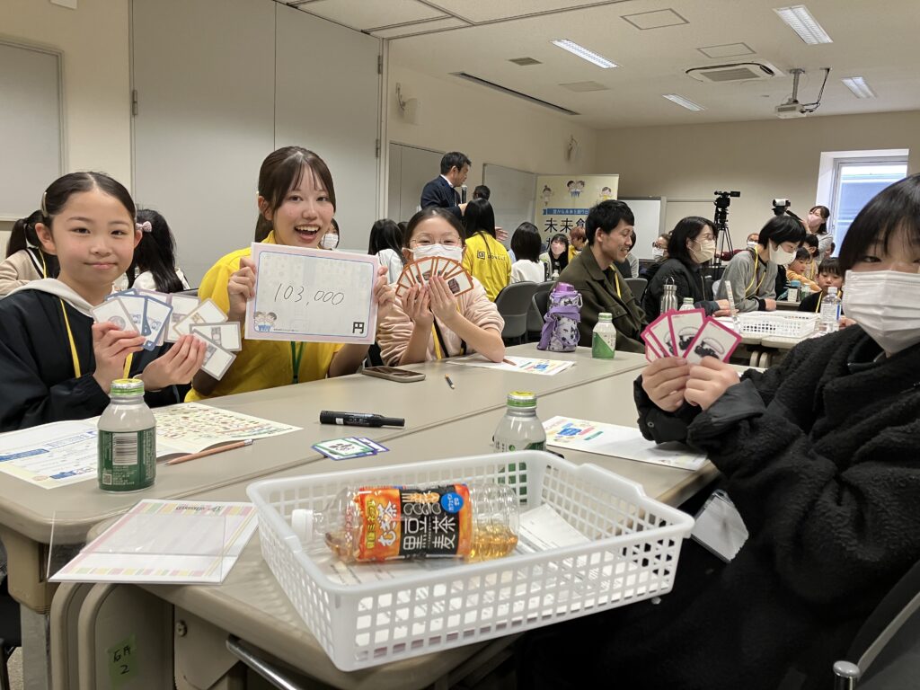 今回は、静岡銀行様にもご協力いただき、お金を増やすためのアドバイスなどカードゲームを盛り上げていただきました。試行錯誤しながら、効率よく生産物を作ったり売上金額を増やそうと仲間と相談しながら戦略を考える様子が多く見られ、意欲的に活動しようとする姿勢が素晴らしかったです。