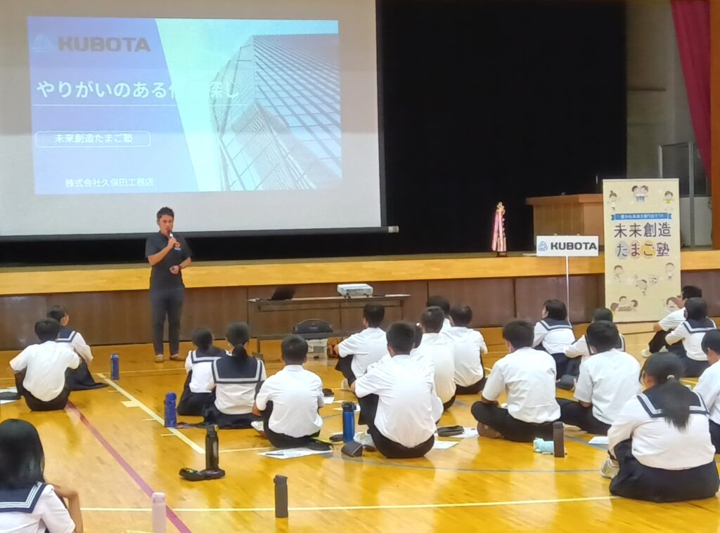 さらに、株式会社久保田工務店 代表取締役社長の久保田智也様からは、SDGsへの取り組みや実際の仕事の様子についてお話をいただき、地域の中で企業が果たす役割や働くことの価値について考える時間となりました。