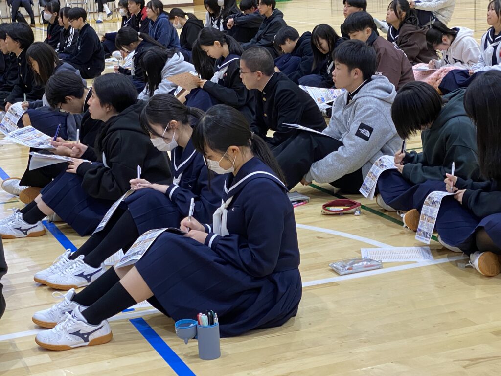 生徒の皆さんが前向きで、熱心にメモを取りながら話に耳を傾ける姿が印象的でした。